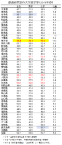 2019年春の大学進学率の全国平均は53.7%、男子56.6%、女子50.7%です。